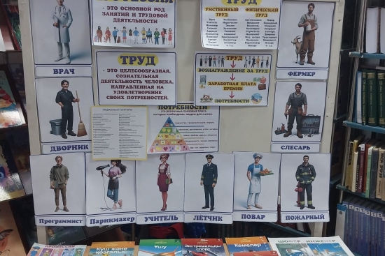 Выставка "Марафон профессий" прошла в школьной библиотеке, учащиеся получили информацию о различных профессиях и сделали шаг к выбору будущей профессии.
